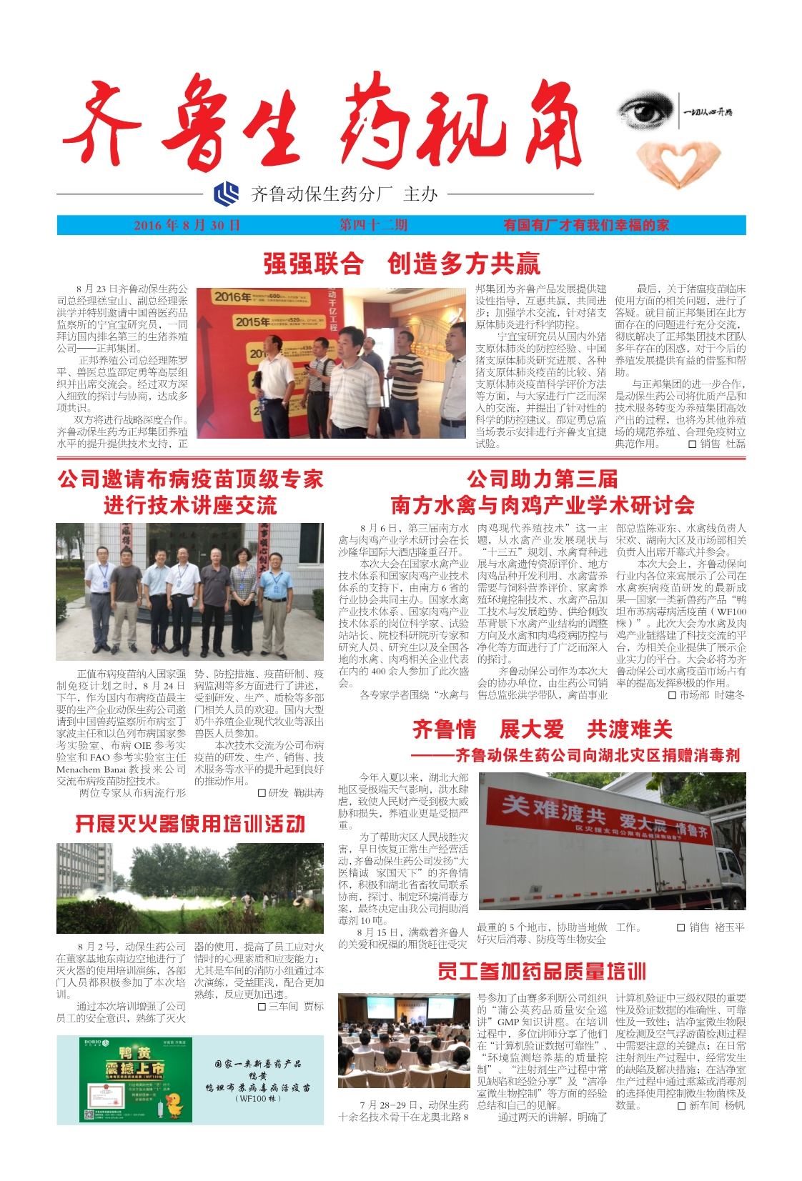 "好疫苗 齊魯造" 、"齊魯獸藥 真誠可靠"是公司對產(chǎn)品質(zhì)量的堅定承諾。公司建有完善的質(zhì)量監(jiān)管體系,實施全程監(jiān)控,嚴格檢驗,產(chǎn)品質(zhì)量達到國內(nèi)領(lǐng)先水平。